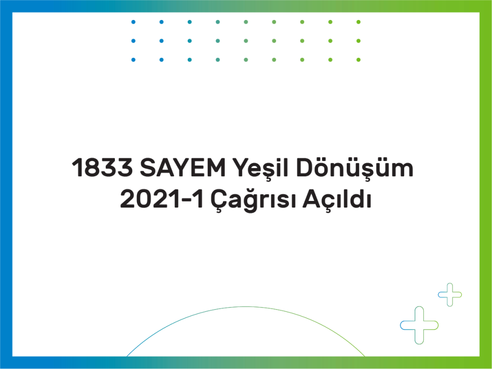 1833 SAYEM Yeşil Dönüşüm 2021-1 Çağrısı Açıldı Koordinatörlüğünü Sanayi ve Teknoloji...