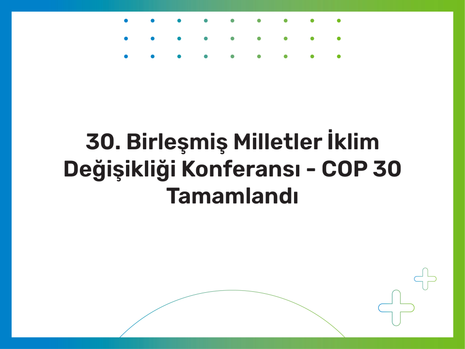 30. Birleşmiş Milletler İklim Değişikliği Konferansı - COP 30 Tamamlandı Küresel iklim kriziyle mücadele kapsamında Birleşmiş...