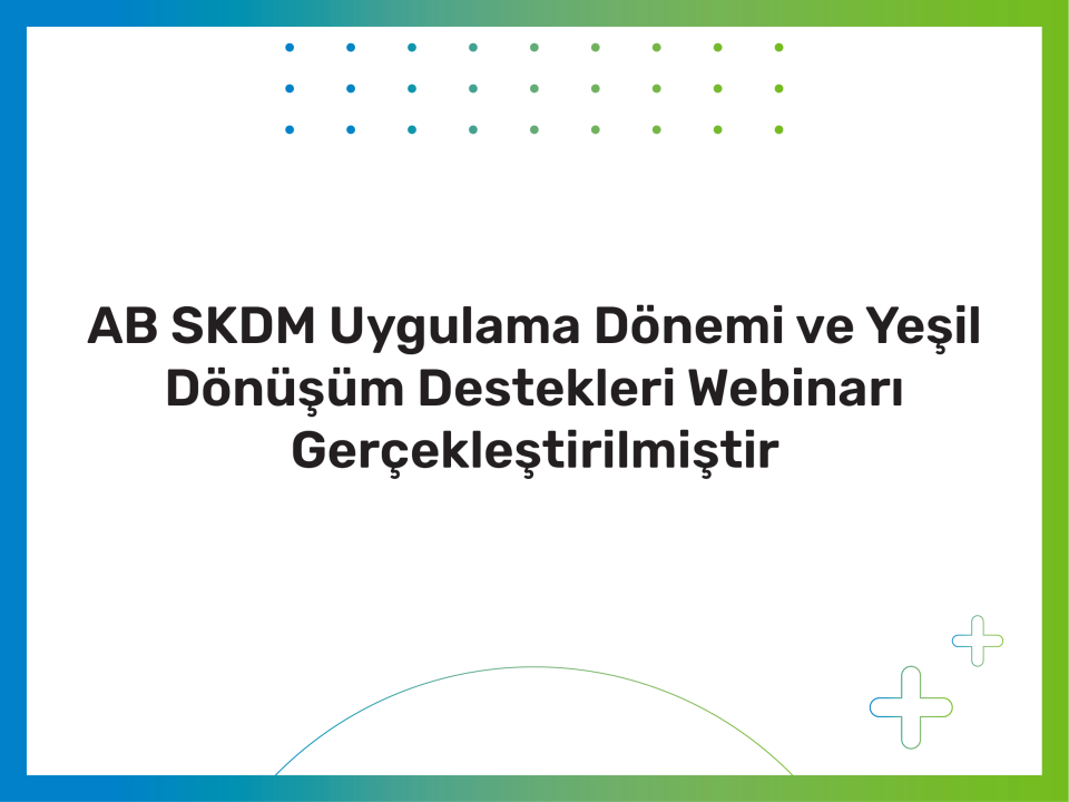 AB SKDM Uygulama Dönemi ve Yeşil Dönüşüm Destekleri Webinarı Gerçekleştirilmiştir Makine ve Aksamları...