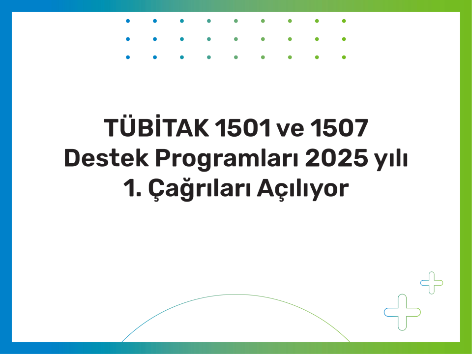 TÜBİTAK 1501-Sanayi Ar-Ge Destek Programı ve 1507-KOBİ Ar-Ge Başlangıç Destek Programı 2025 Yılı 1. Çağrıları...