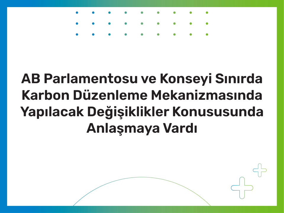 AB Parlamentosu ve Konseyi Sınırda Karbon Düzenleme Mekanizmasında Yapılacak Değişiklikler Konususunda Anlaşmaya Vardı 26 Şubat 2025...