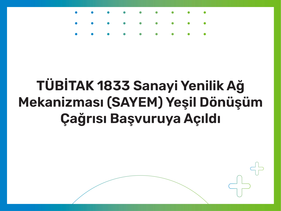 TÜBİTAK 1833 Sanayi Yenilik Ağ Mekanizması (SAYEM) Yeşil Dönüşüm Çağrısı Başvuruya Açıldı Özel...